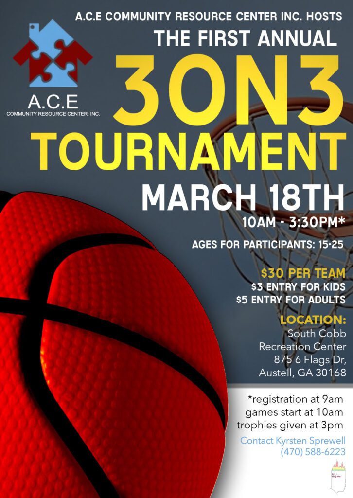 The A.C.E. Community Resource Center will be hosting its first annual 3 on 3 Tournament on March 18. This event will begin at 10 a.m. and will conclude at 3:30 in the afternoon. To participate in the tournament, persons must be between ages 15-25.