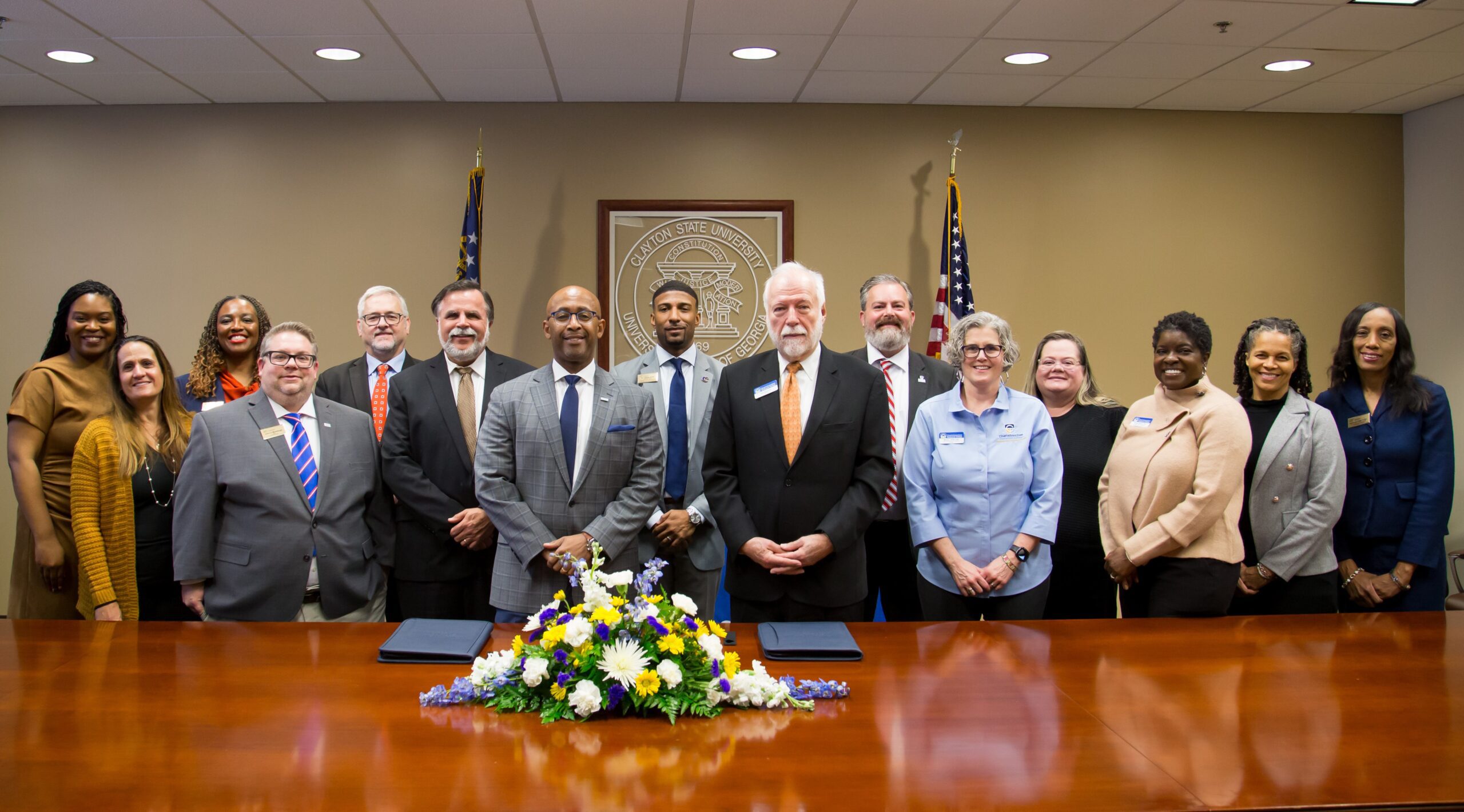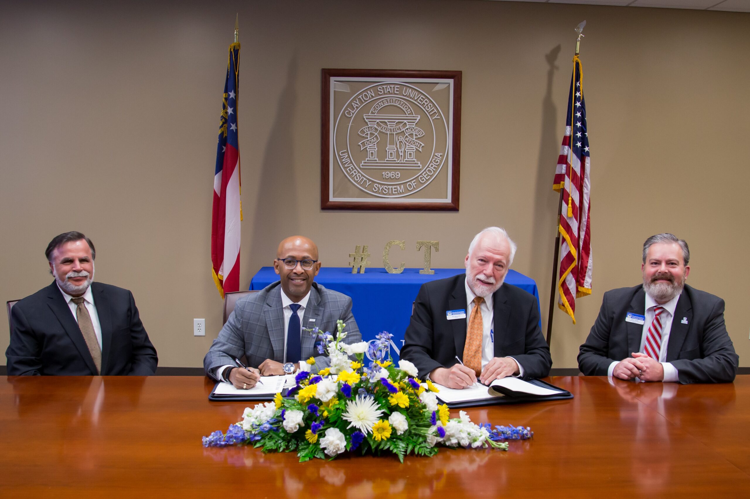 Officials from Chattahoochee Tech and Clayton State gathered at the Clayton State campus in Morrow on Friday, Jan. 19, to sign the articulation agreement. “While this is not the first time Clayton State has established such agreements with our friends in the technical school system, we are still excited at the prospect that our partnerships will further enhance that expansive education of the next generation of Georgians,” said Dr. Georj L. Lewis, president of Clayton State University.
