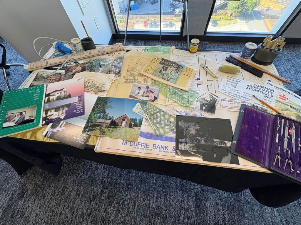 Foreman Seeley Fountain Architecture (FSF) celebrated the firm’s 40th Anniversary October 22 with an event at the Cobb Chamber. Founding partners Jerry Fountain (LC ’19), of Marietta, and Jeff Seeley were joined by retired founder Bob Foreman and new partners Nadine Nacy and Stephen Moon (LC ’08), of Marietta, for a program in front of distinguished guests, family and friends. With themes of 1985 and Back to the Future, employees created exhibits time-traveling through 4 decades including firm artifacts, drawings, models, and cultural and historical events. FSF is a leader in the design of worship, educational, and financial facilities with long-time ties to the Chamber and Cobb community.