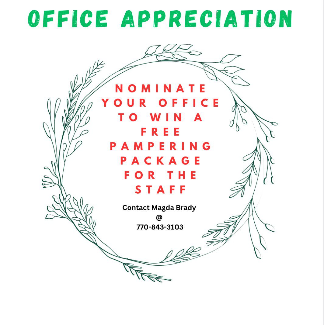 - Also, please feel free to nominate your office to receive an appreciation pampering session for your staff.
