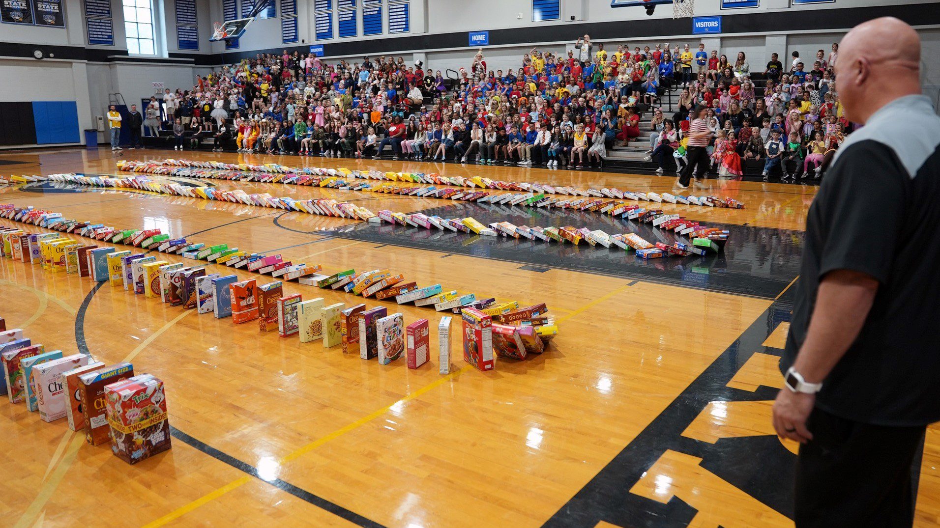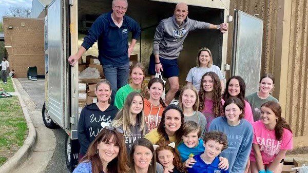 Similarly, the lower school hosted a book-themed Rock Your School Week, with dress-down days, mystery readers, and special activities, such as a fifth-grade basketball tournament. The lower school domino train was estimated to have collected nearly 500 boxes of cereal for the Marietta Food Pantry. High school students and other MPCS volunteers then delivered and distributed the cereal and supplies to more than 300 families in need through a partnership with the Marietta Food Pantry. Lower school also donated gently used books for Books for Africa.