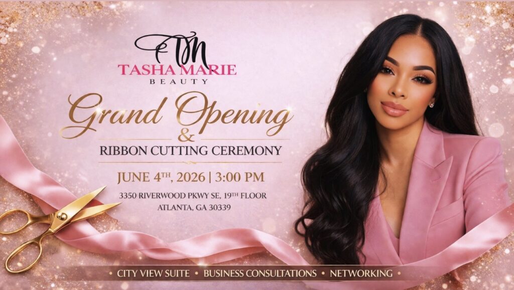 Tasha Marie Beauty proudly announces its Grand Opening & Ribbon Cutting Ceremony on Thursday, June 4, 2026, at 3:00 PM, in partnership with Cobb Chamber. The event will take place at 3350 Riverwood Pkwy SE, 19th Floor, Atlanta, GA 30339.